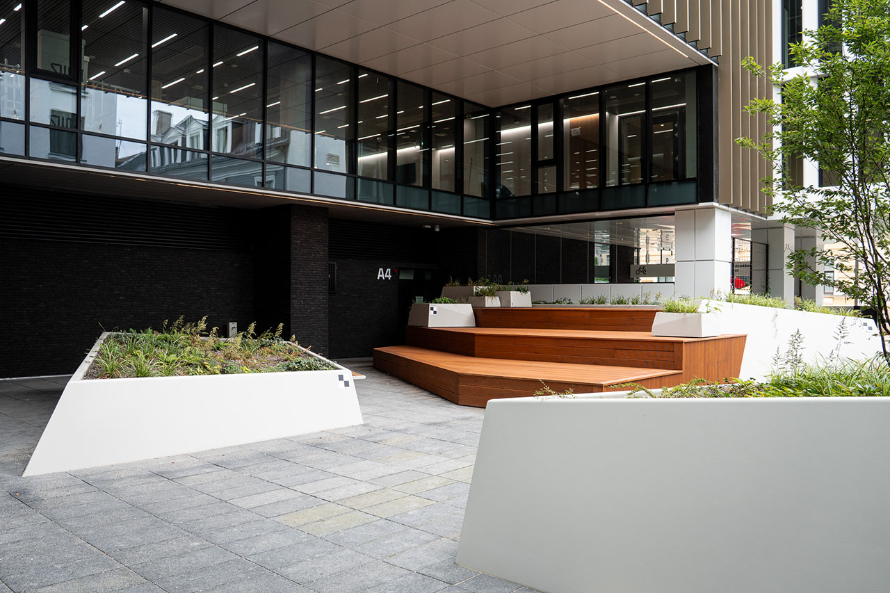 WORKS DONE: LANDSCAPE PLANTING, LANDSCAPING WORKS, CONSTRUCTION OF WOODEN DECKING AND TILED SURFACES ON ROOF TERRACES, ESTABLISHMENT OF A FLOWER MEADOW, DEMOLITION WORKS, INSTALLATION OF CONCRETE AND GRANITE SLABS