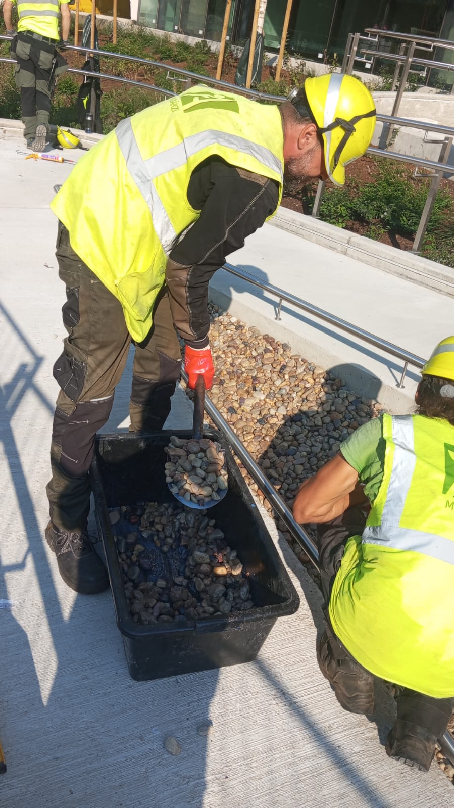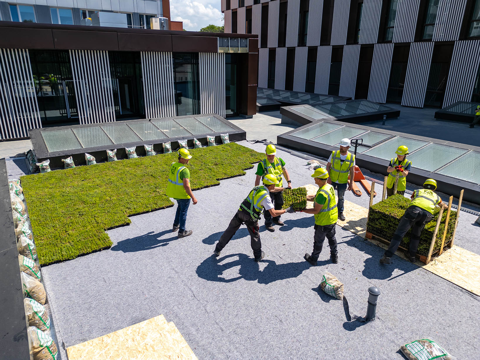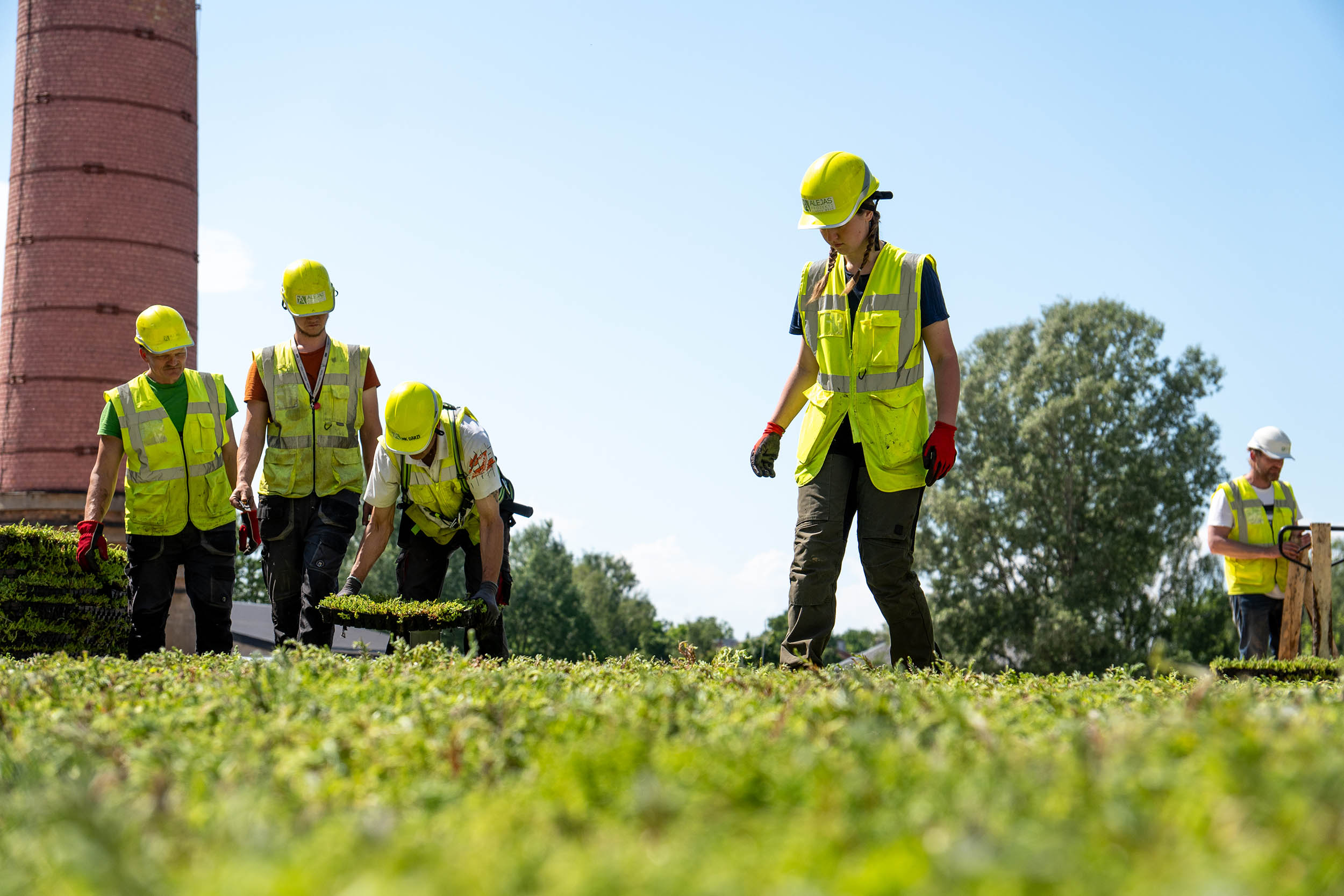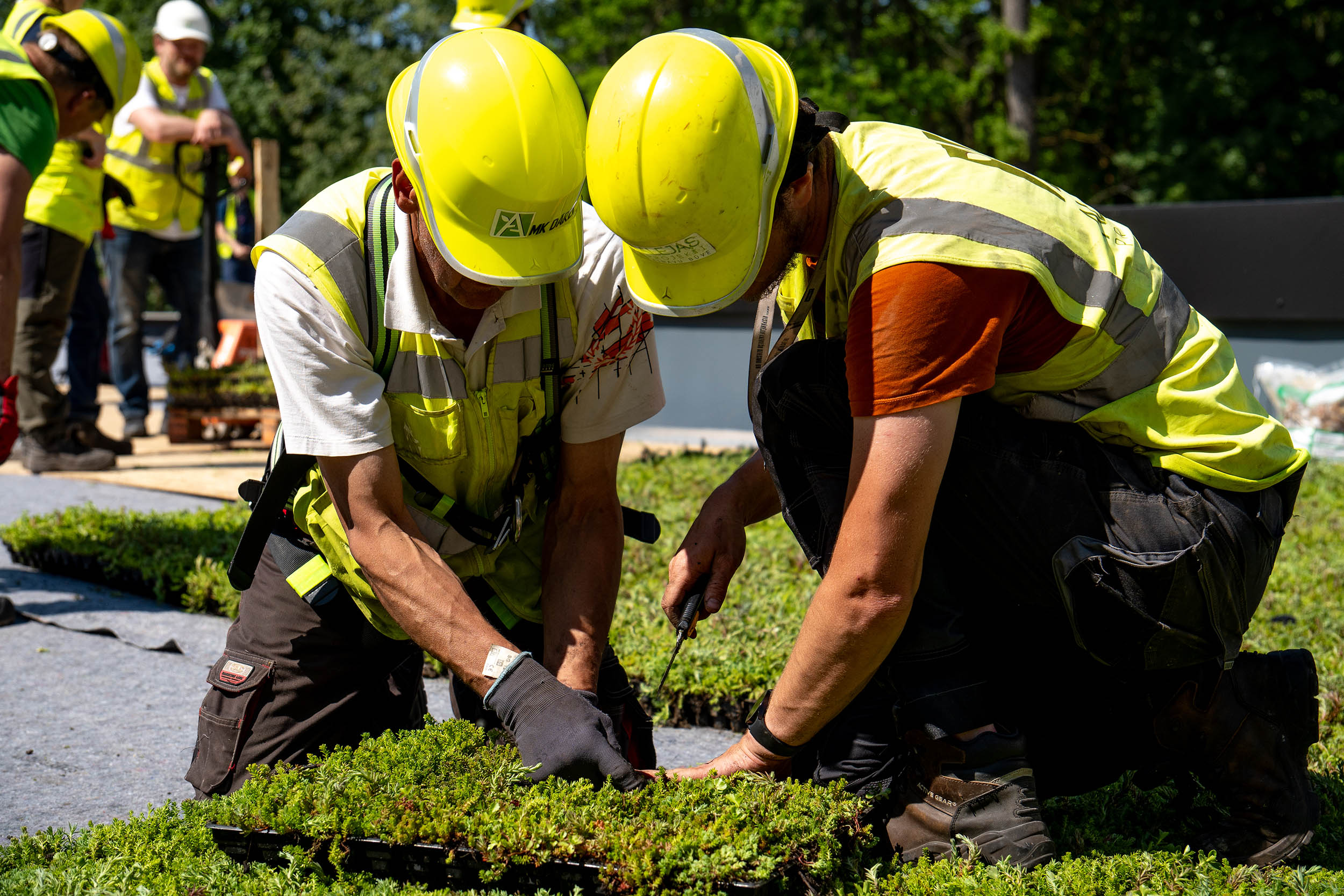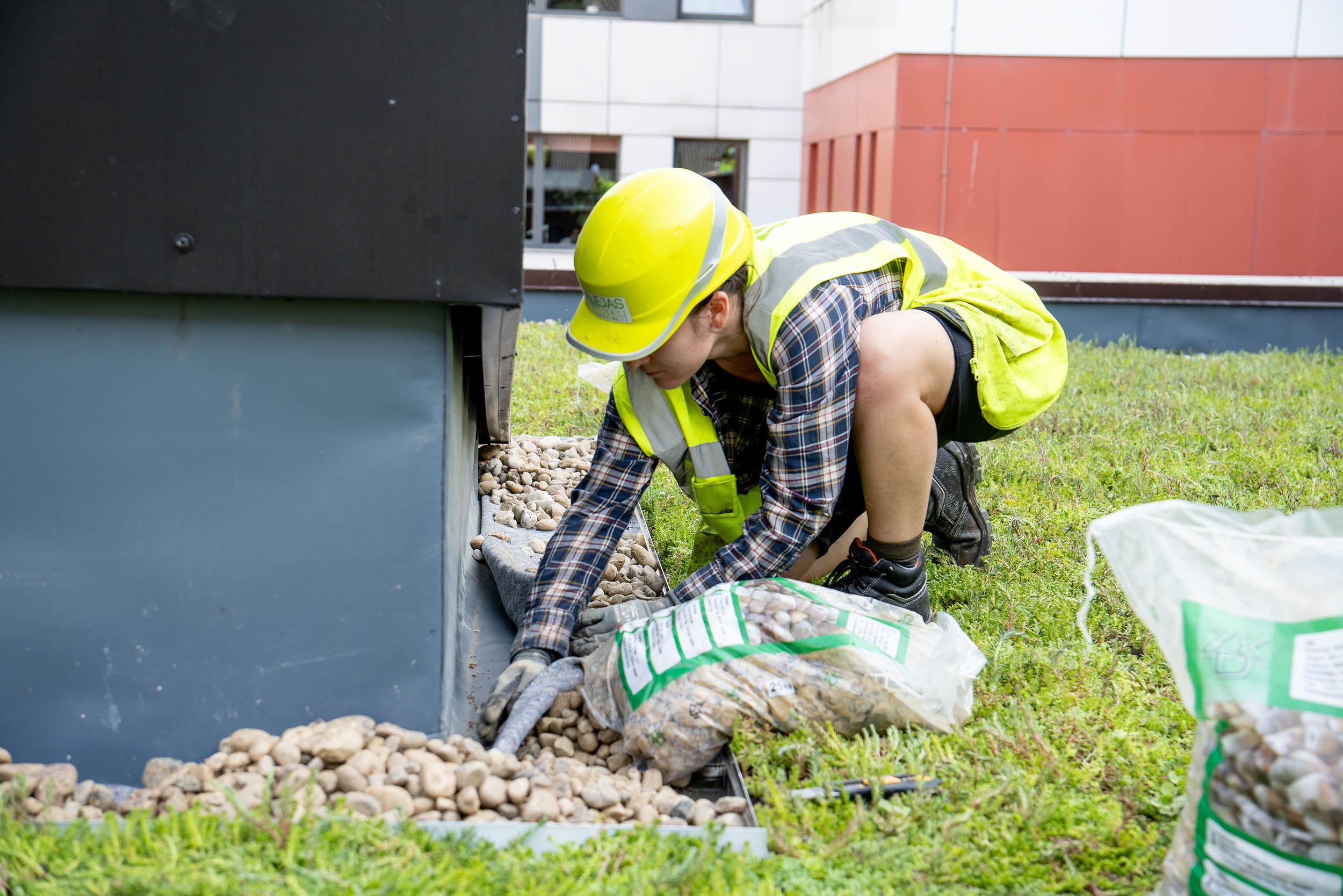 VEIKTIE DARBI: APSTĀDĪJUMU UN ZĀLIENA IERĪKOŠANA, LABIEKĀRTOŠANAS DARBI, BIOIEVALKU IZVEIDE, GABIONU ATBALSTA SIENU UZSTĀDĪŠANA, ZAĻĀ JUMTA IERĪKOŠANA