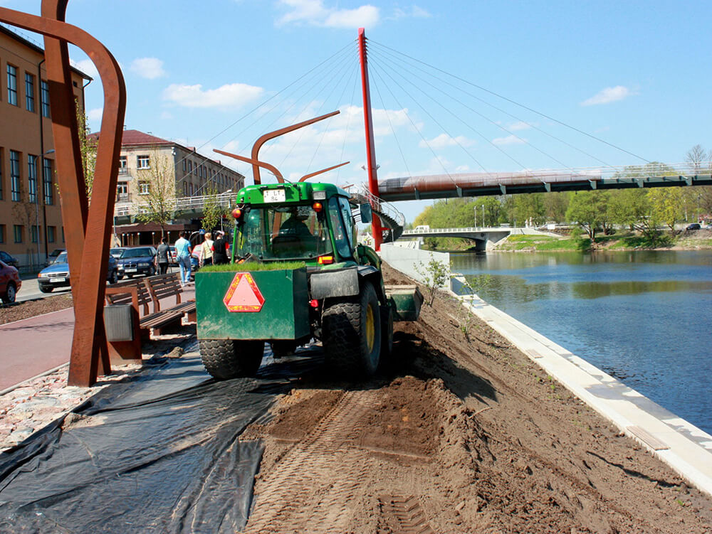 VEIKTIE DARBI: KOKU, KRŪMU, ZIEMCIEŠU STĀDĪJUMI, ZĀLIENU IERĪKOŠANA, NOGĀŽU STIPRINĀŠANA AR ĢEOPAKLĀJIEM UN PAKLĀJZĀLIENU