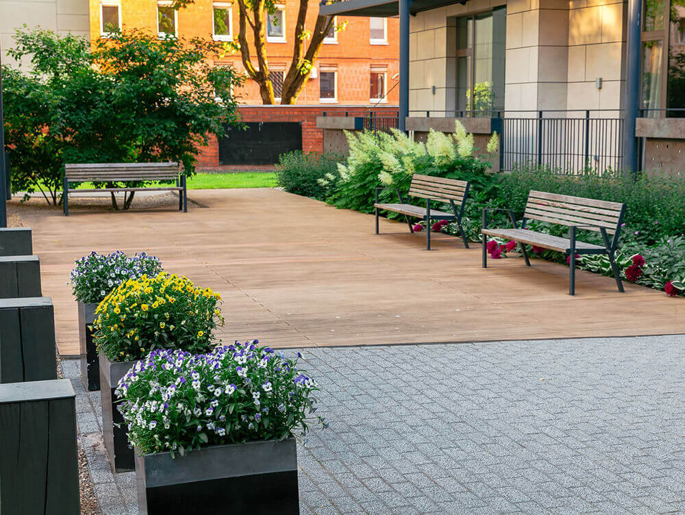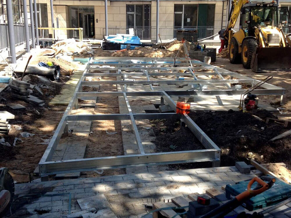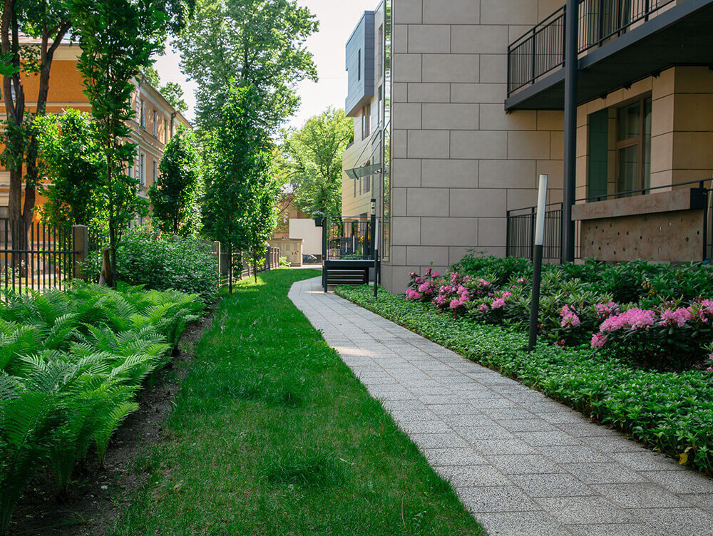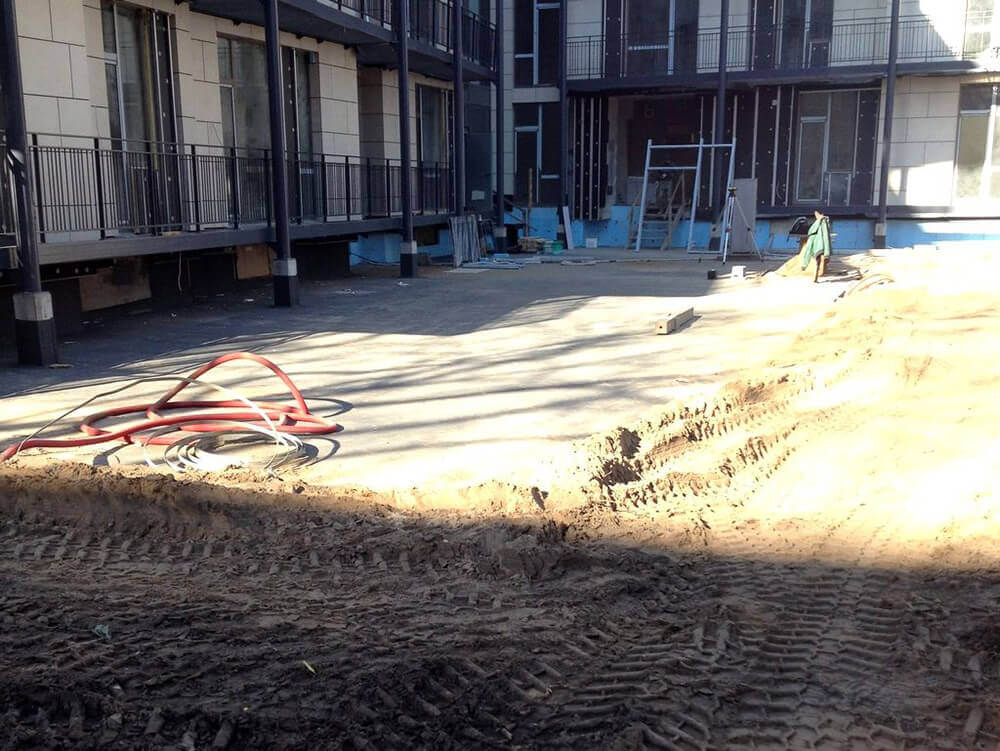 VEIKTIE DARBI: BRUĢA CELIŅU UN LAUKUMU IZBŪVE, JUMTA DĀRZA IERĪKOŠANA, LĪMĒTO OĻU SEGUMA IZVEIDE, TERAŠU UZSTĀDĪŠANA, ZĀLIENA UN APSTĀDĪJUMU IERĪKOŠANA, LABIEKĀRTOJUMA ELEMENTU UZSTĀDĪŠANA