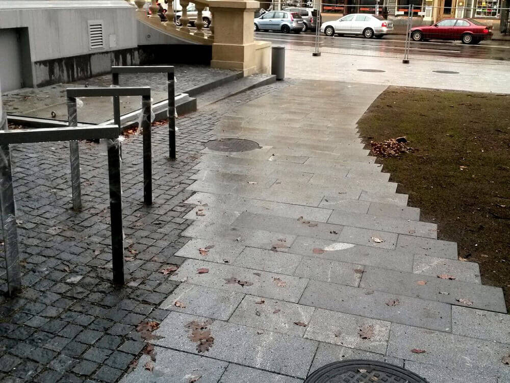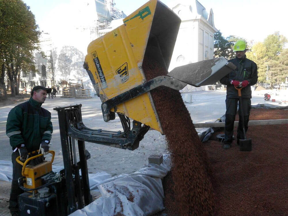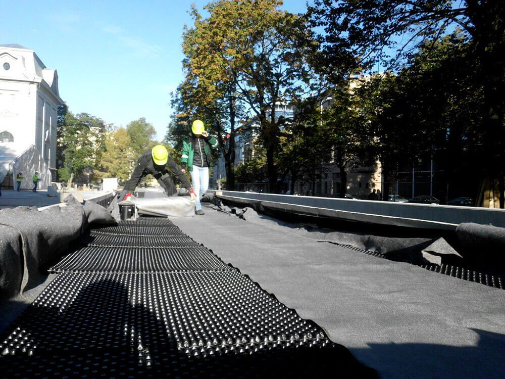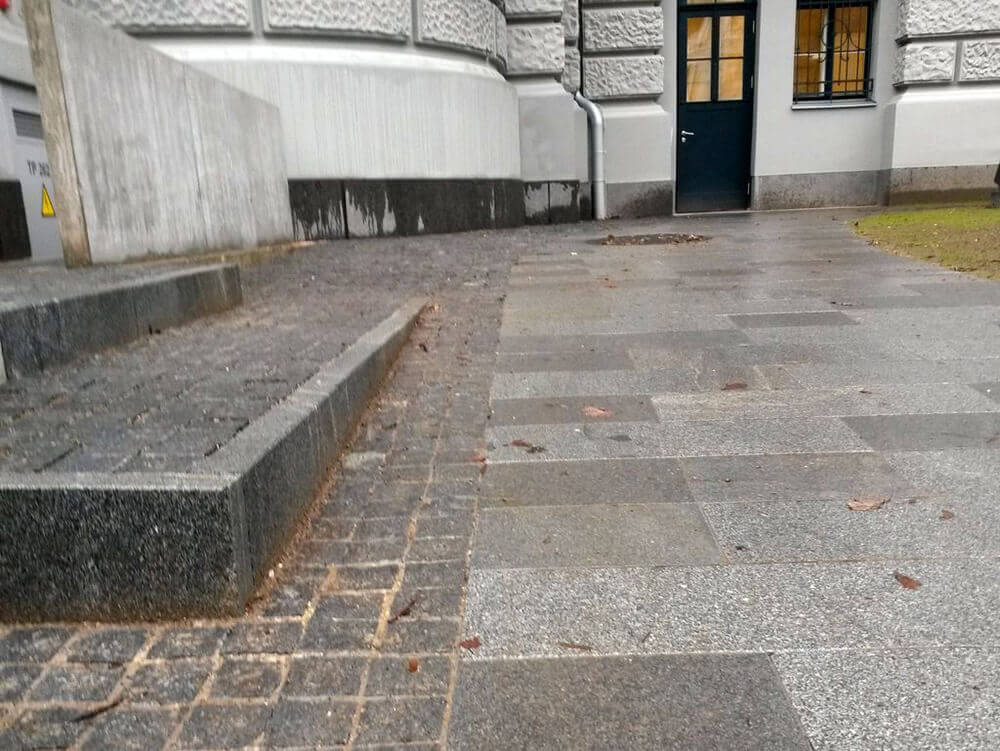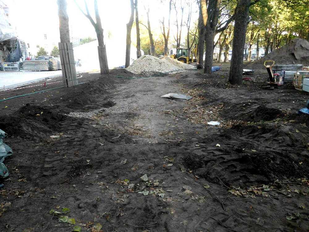 VEIKTIE DARBI: BETONA UN GRANĪTA BRUĢA/ PLĀKŠŅU IEKLĀŠANA CEĻIEM UN LAUKUMIEM, AR ZĀLIENŠŪNĀM STIPRINĀTA GRANTS SEGUMA IZVEIDE, GRANTS CELIŅA IZBŪVE KOKU ALEJĀ, CEĻA BARJERAS UZSTĀDĪŠANA, JUMTA DĀRZA IERĪKOŠANA, ZĀLIENA UN APSTĀDĪJUMU IERĪKOŠANA, LABIEKĀRTOJUMA ELEMENTU UZSTĀDĪŠANA