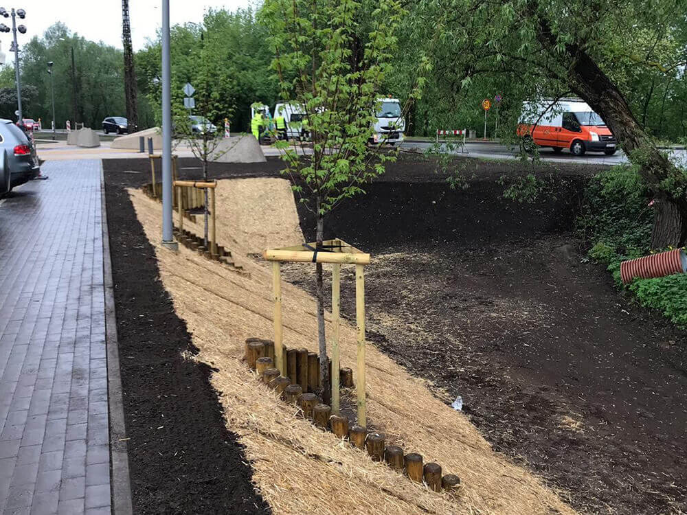 VEIKTIE DARBI: ZĀLIENA UN APSTĀDĪJUMU IERĪKOŠANA, PALISĀŽU KONSTRUKCIJU IZVEIDOŠANA, NOGĀZES VEIDOŠANA UN STIPRINĀŠANA, SALMU PAKLĀJA IEKLĀŠANA NOGĀZĒS, BRUĢA IEKLĀŠANA